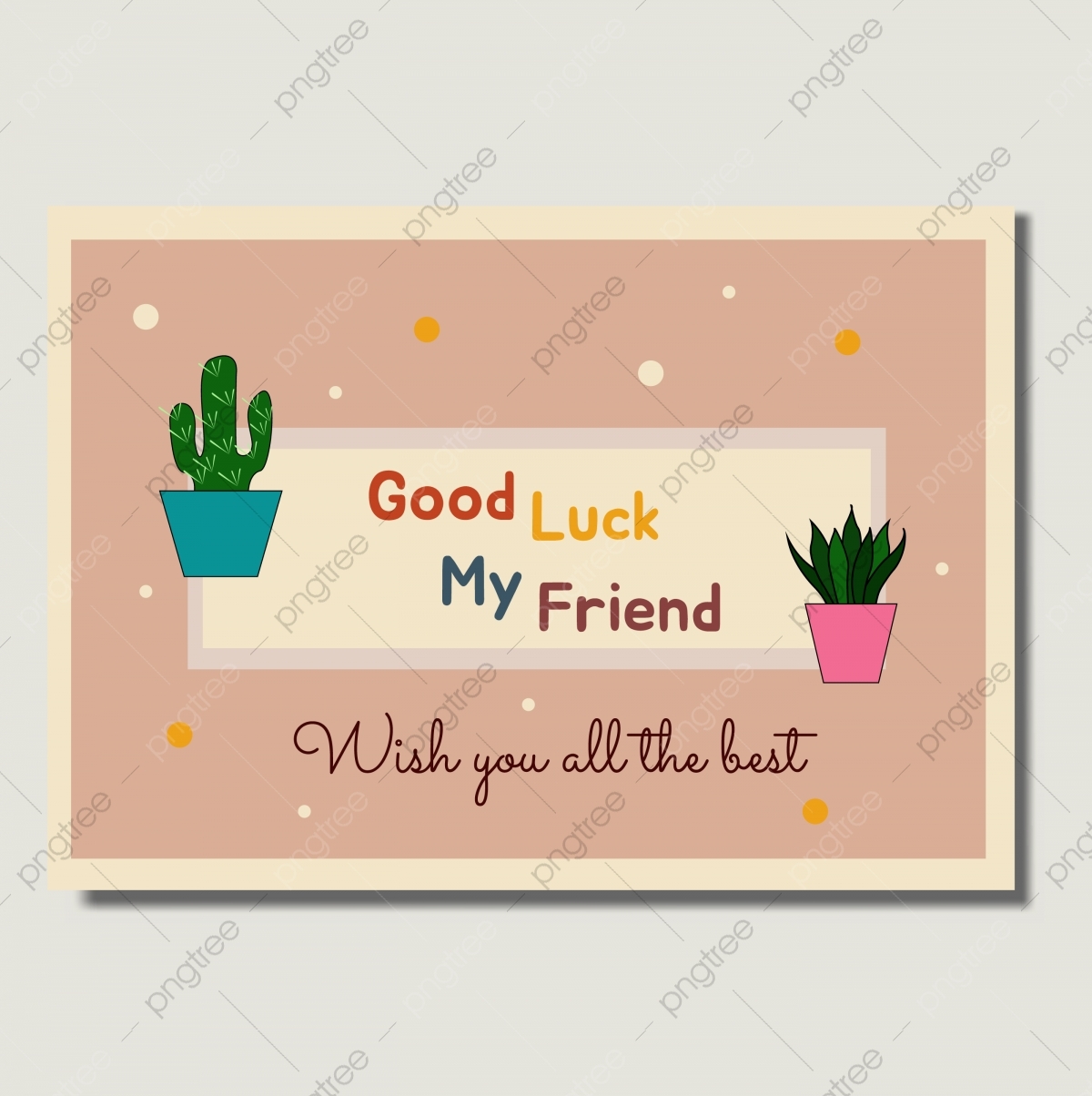Good Luck Card Template With Cute Cactus And Frame Template Download On Pngtree