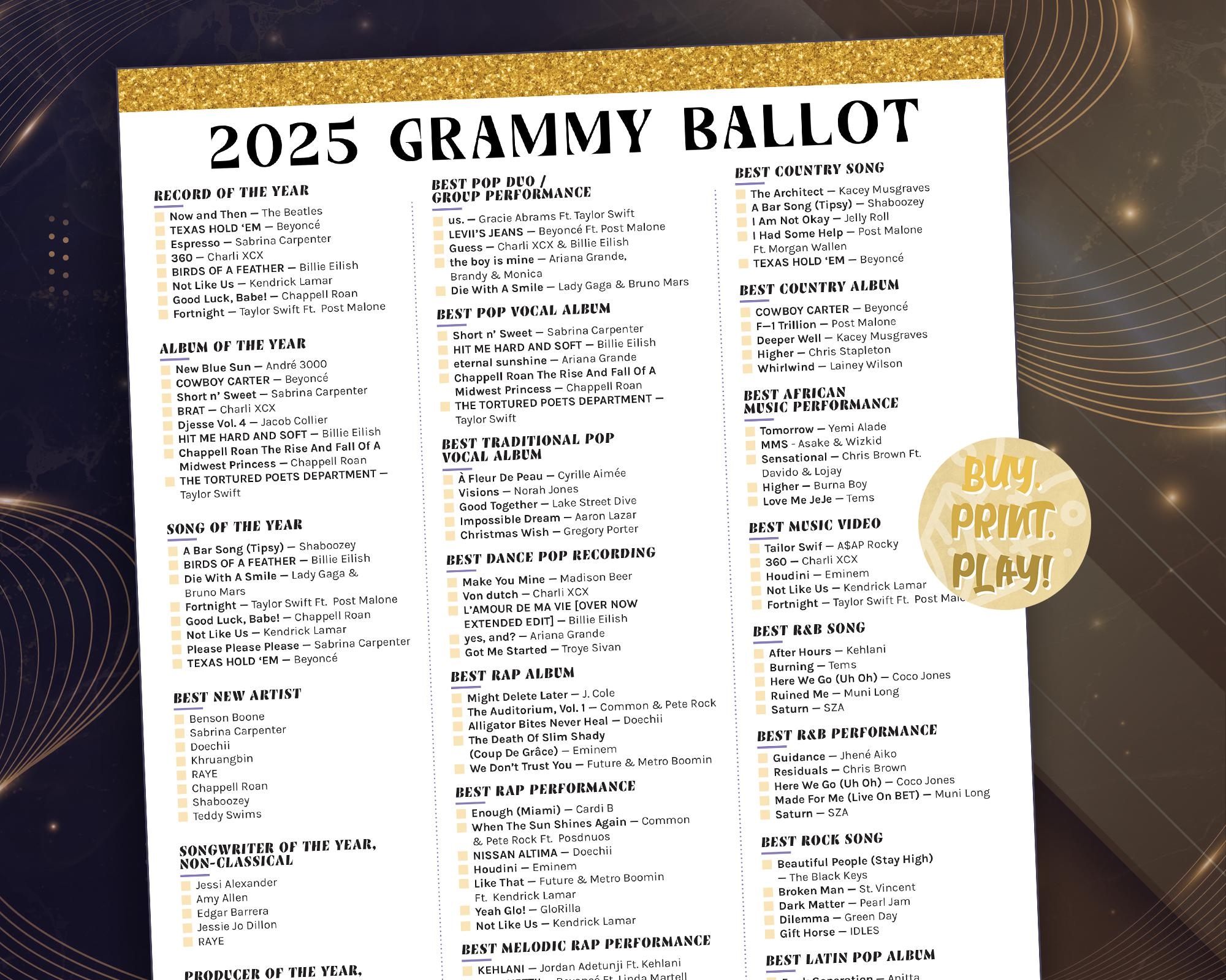 The Best Printable Ballot Alternative For The 2025 Grammy Awards