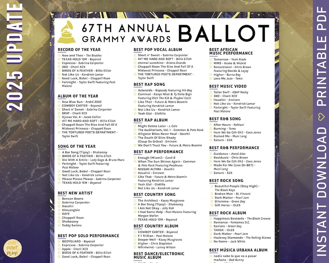 Grammy Ballot 2025 Printable Free