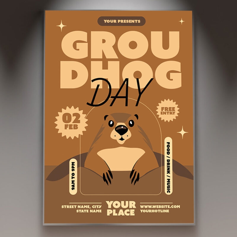 Groundhog Day Card Printable PSD Template PSDmarket