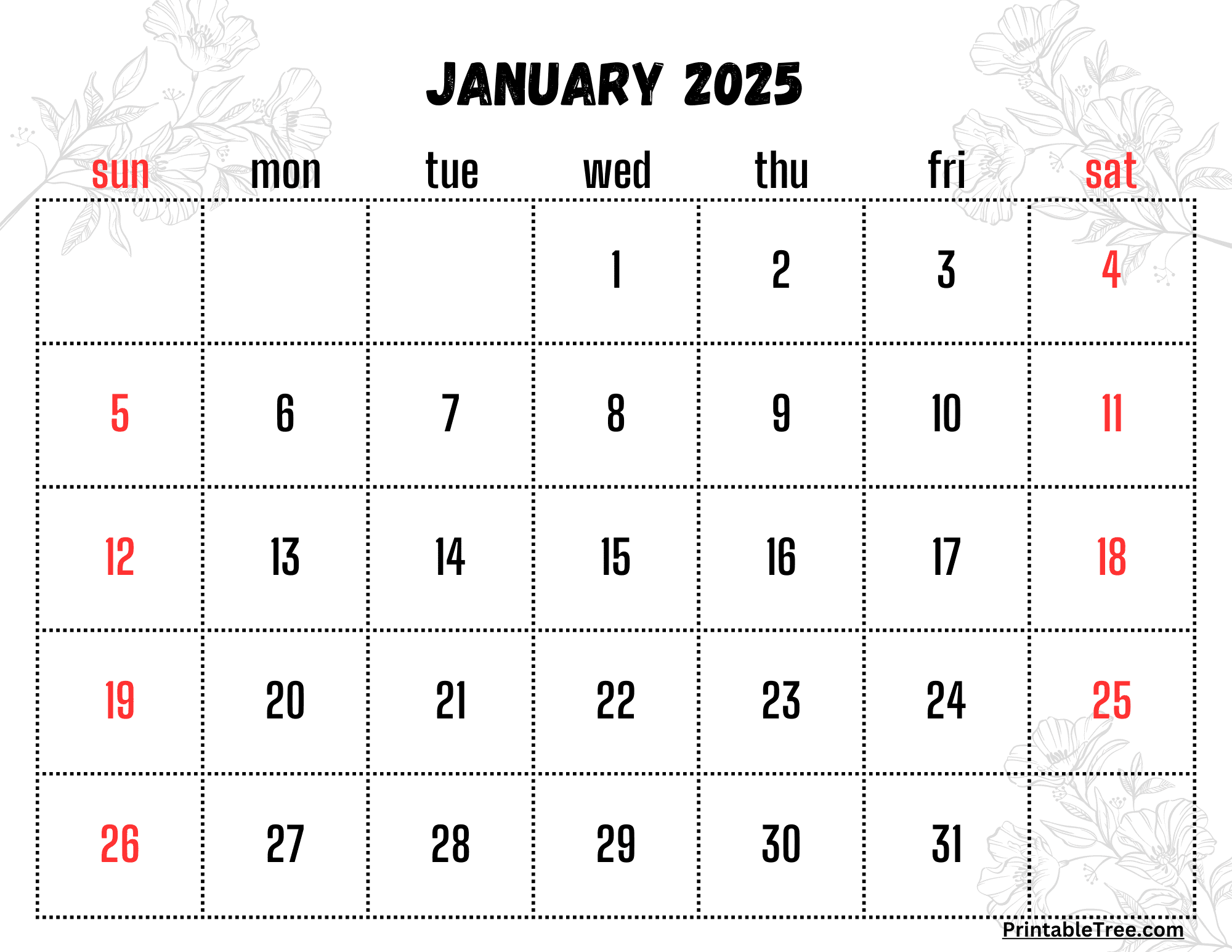 Our January 2025 calendar printable PDF free options include various designs and layouts to choose from. You can select a simple and clean calendar for a minimalist look, or opt for a more decorative design to add a pop of color to your workspace. Whatever your style, we have a calendar that will suit your preferences.
