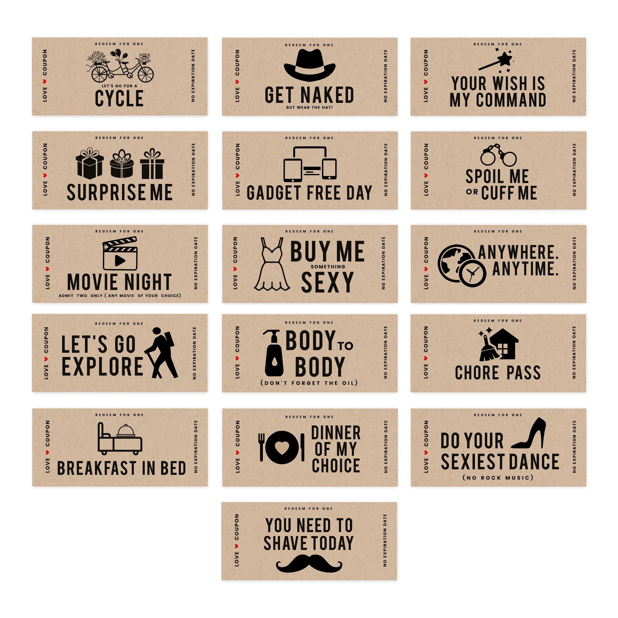Koyal Wholesale Kraft Brown Love Coupons For Boyfriend Girlfriend Unique Funny Romantic Valentines Day 16 Pk
