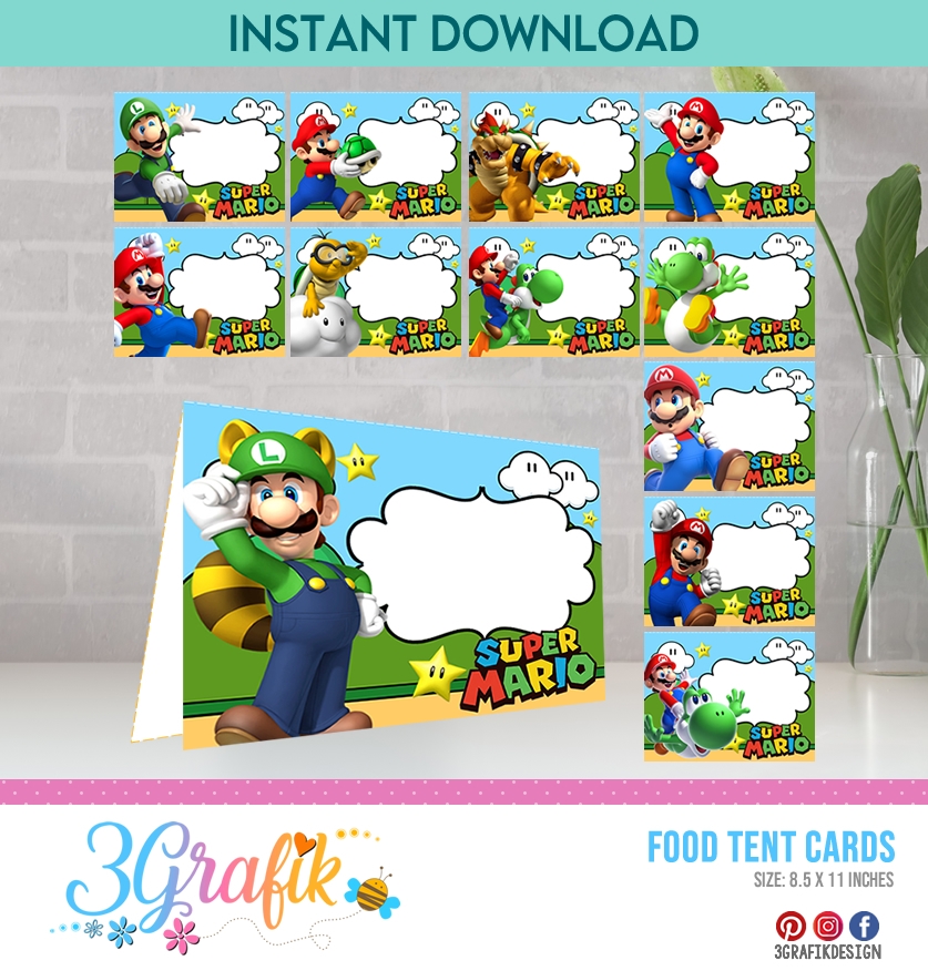 Super Mario Bros Food Tent Cards Printables 3Grafik Printable