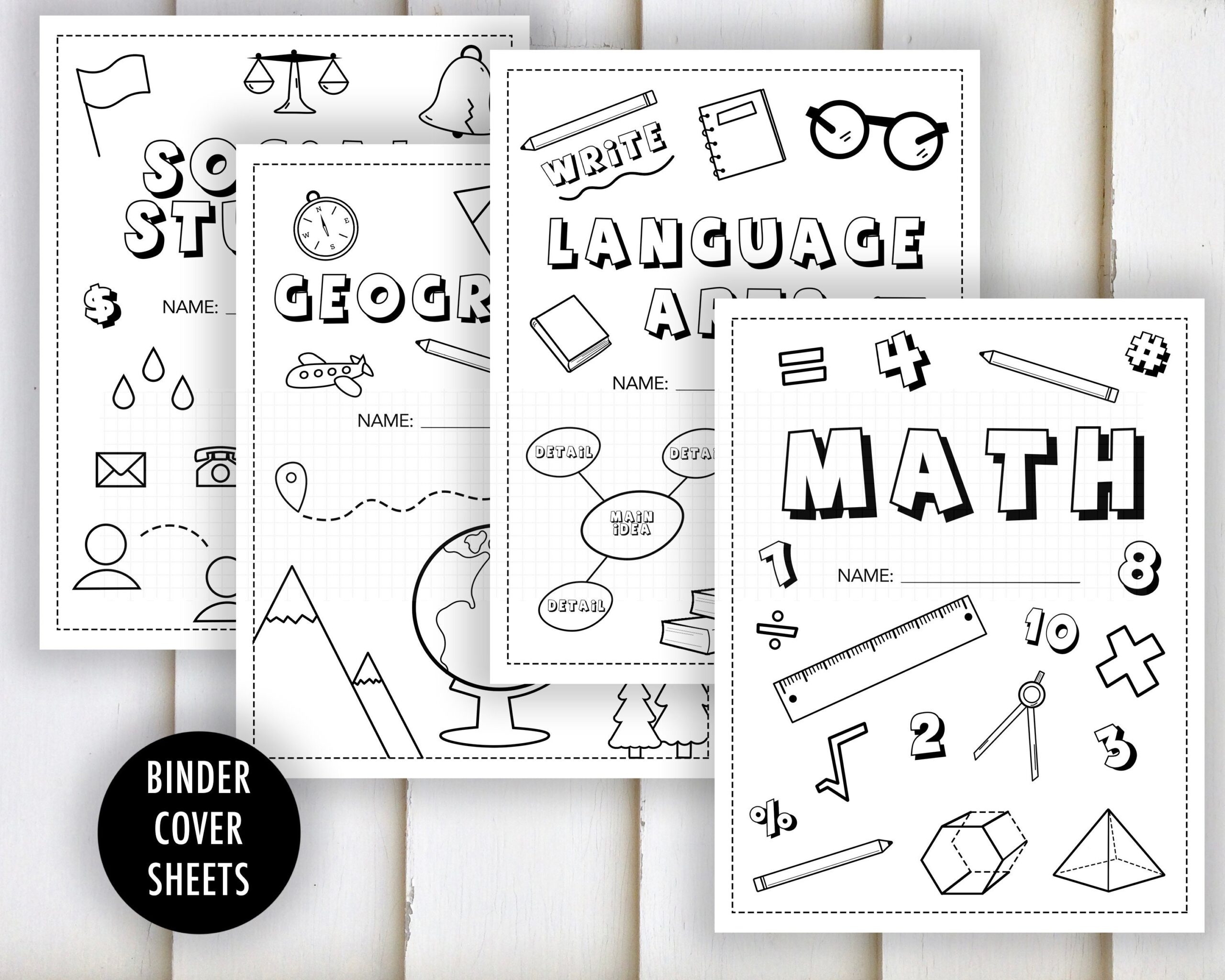 Binder Cover Printable Cover Sheet Math Language Arts Science Geography Coloring Class Organization 6th 7th Grade Download