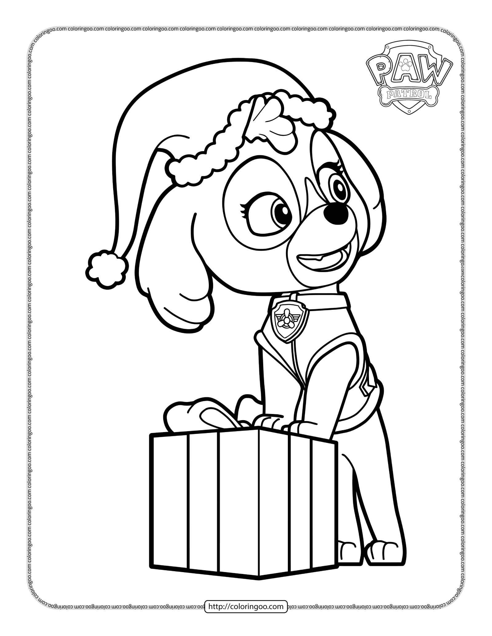 Paw Patrol Skye With A Gift Coloring Page