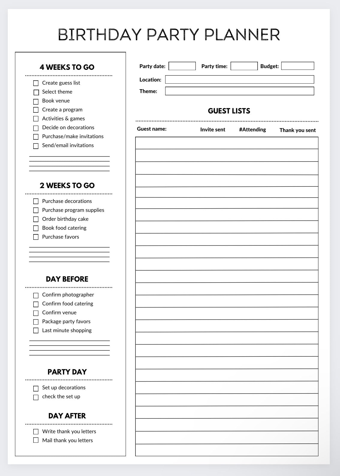 Free Party Planner Templates To Customize And Print Canva Worksheets Library