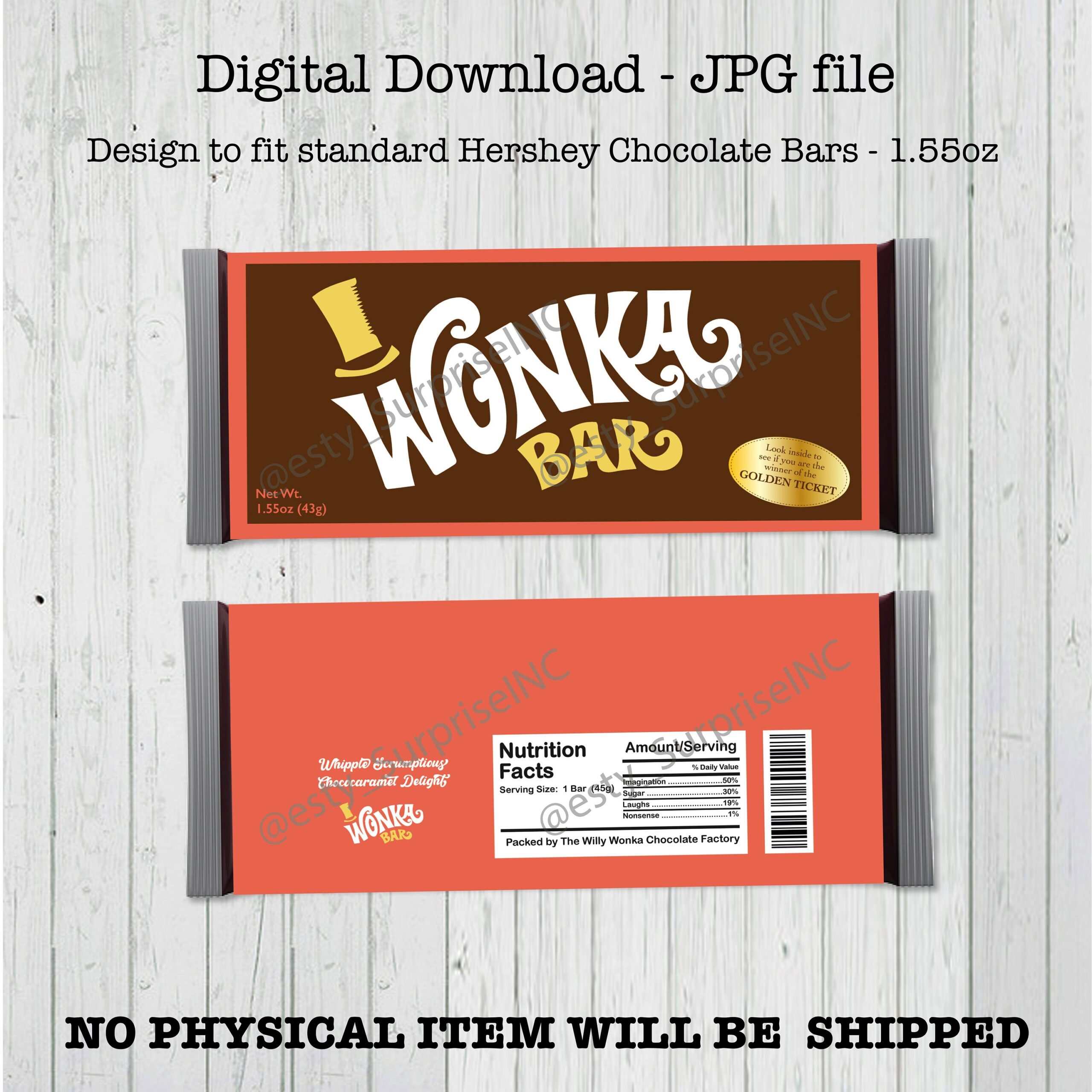 Wonka Chocolate Printable Bar Wrapper Willy Wonka Party Custom Candy Bar Label Charlie And The Chocolate Factory DIY Etsy
