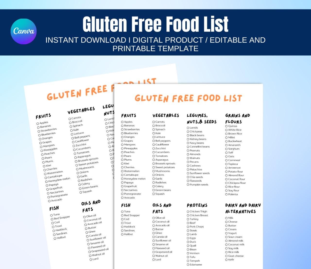 Gluten Free Food List Gluten Free Products Gluten Sensitivity Gluten Free Meal Planner Gluten Free Diet Template Etsy