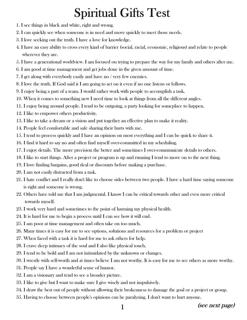 Printable Spiritual Gifts Test Free