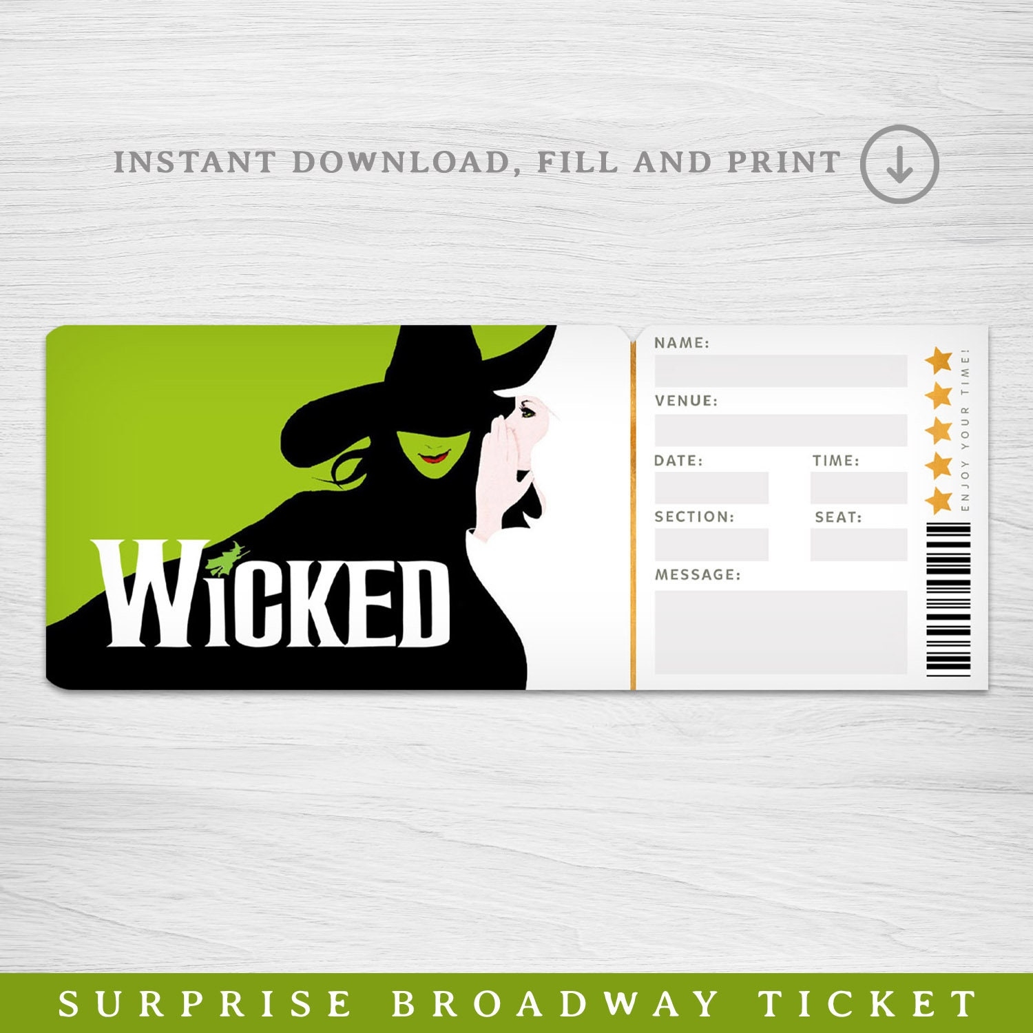 Printable WICKED Broadway Surprise Ticket Editable Musical Theatre Faux Event Admission Souvenir Keepsake PDF Instant Digital Download Etsy