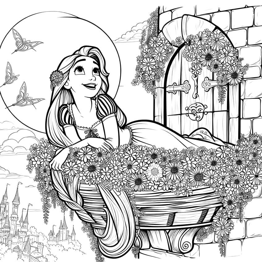 Rapunzel is a beloved character from the classic fairy tale, known for her long, flowing hair and adventurous spirit. These coloring pages feature Rapunzel in various scenes from the story, from her tower to the magical kingdom she discovers.