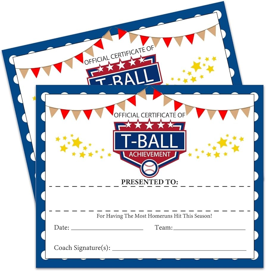 Our Tball certificates come in various designs and styles, so you can choose the one that best fits your team or event theme. From colorful and fun to classic and elegant, we have something for everyone.